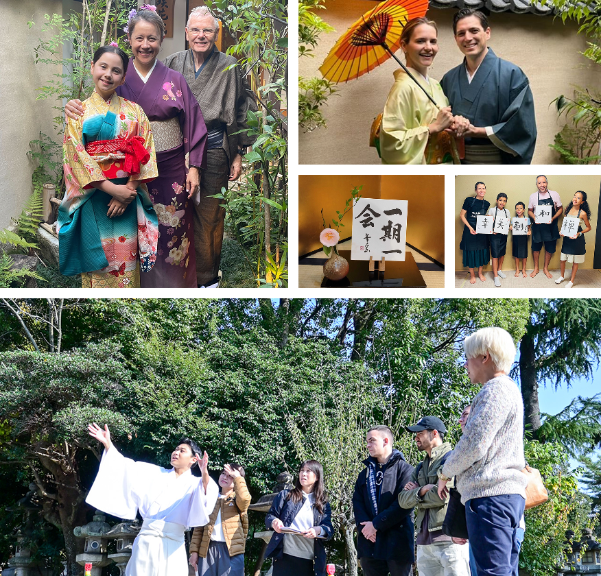 1997年の創業以来、私たちは京都を拠点に、日本の伝統文化を世界に発信し続けてきました。茶道、着物、書道、華道、お料理など、本物の文化体験を通じて、日本の心を世界中の旅行者にお届けしています。大手旅行代理店やラグジュアリーホテルとの長年の提携実績があり、安心してご利用いただけます。